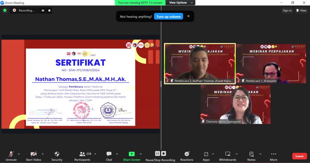 Ratusan Peserta Belajar PPh 21 di Webinar Prodi Akuntansi FEB UKSW Bersama IAI Komisariat Salatiga