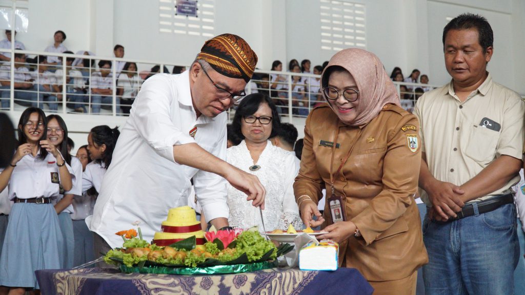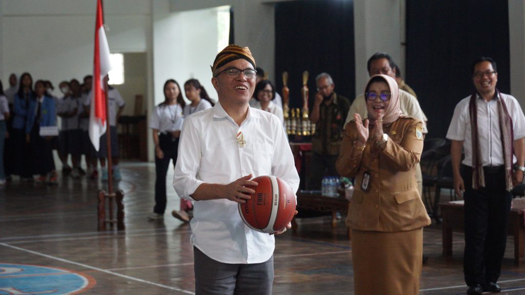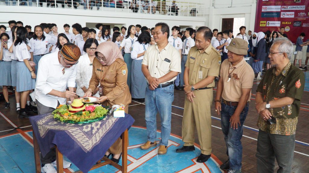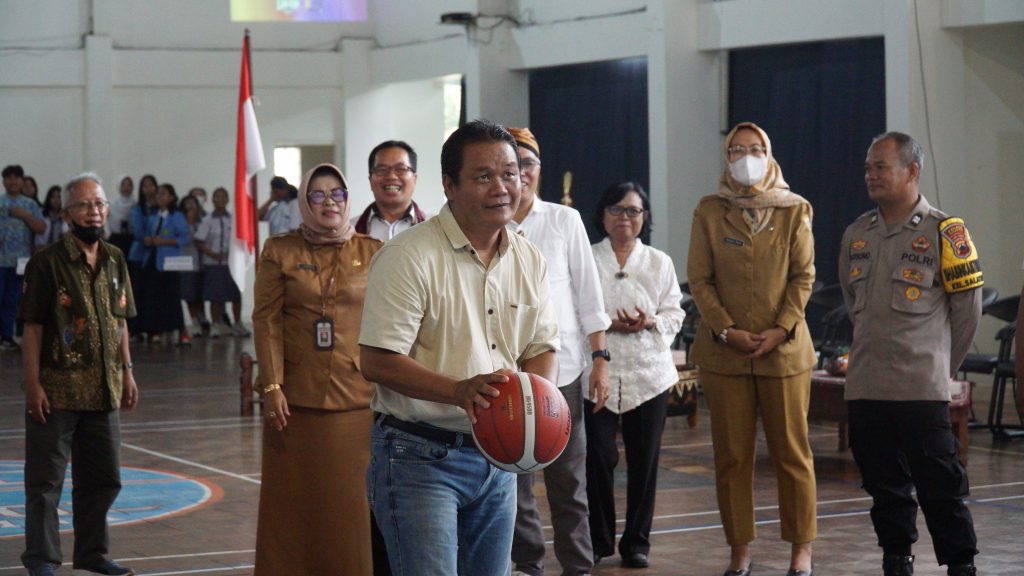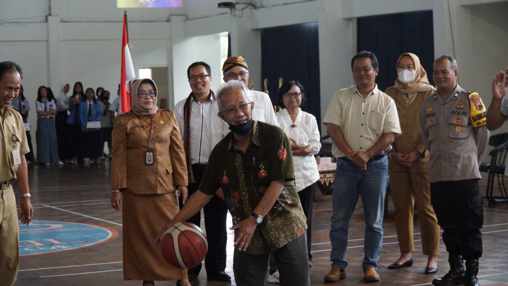 Pembukaan liga basket dengan tema “Play with Fire, Win Your Desire!” ini ditandai dengan pemotongan tumpeng oleh Wakil Rektor Bidang Pengajaran, Akademik dan Kemahasiswaan (WR PAK) Universitas Kristen Satya Wacana (UKSW) Prof. Dr. Ferdy Semuel Rondonuwu, S.Pd., M.Sc., bersama Kepala Dinas Pendidikan Kota Salatiga Nunuk Dartini, S.Pd., M.Si.