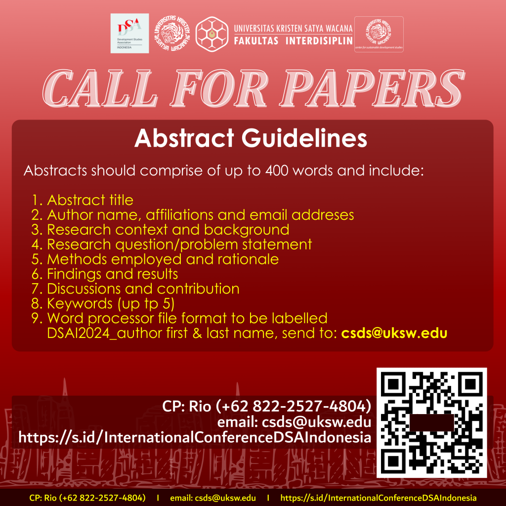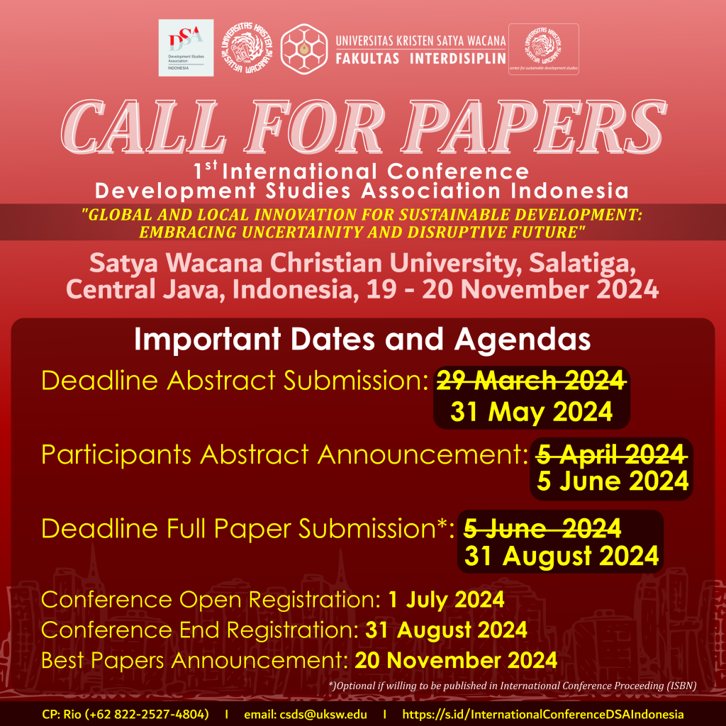 Fakultas Interdisiplin (FID), Program Studi S3 Studi Pembangunan, dan Center for Sustainable Development Studies (CSDS) akan menggelar 1st International Conference Development Studies Association Indonesia, pada 19 dan 20 November 2024.