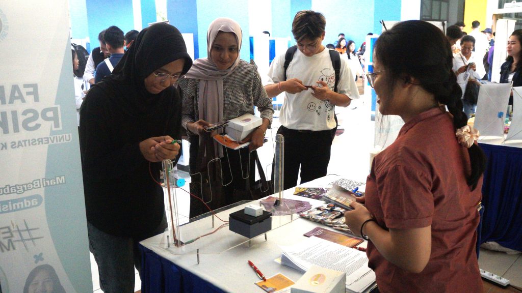 Tidak ketinggalan, ekspo fakultas yang diisi 9 fakultas di UKSW menjadi momen berharga bagi orang tua dan para calon mahasiswa untuk mengenal sekaligus menemukan bidang studi yang diminati. Sesi yang menarik di open space lantai 2 FTI ini, kembali menghadirkan stand-stand fakultas dengan berbagai produk kreatif disertai pemaparan yang ramah dan informatif.