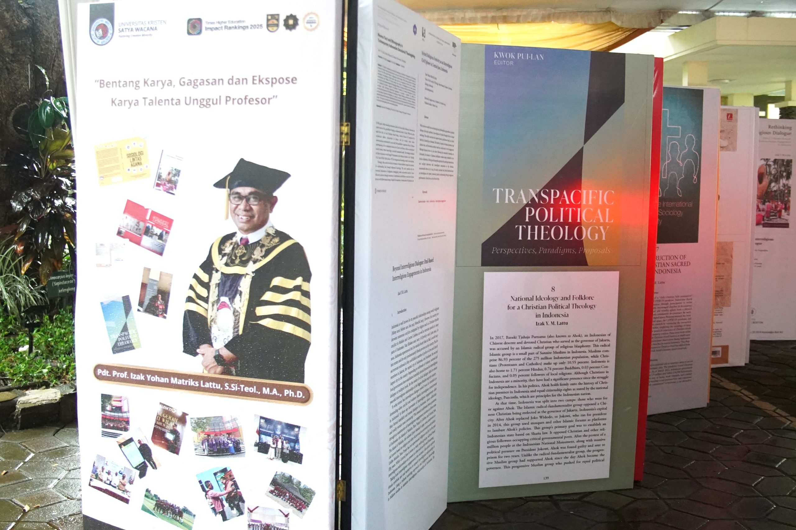 “Bentang Karya, Gagasan dan Ekspose Talenta Unggul Profesor” dihadirkan oleh Universitas Kristen Satya Wacana (UKSW) belum lama ini di halaman depan Balairung Universitas. Pameran ini menampilkan karya unggulan dari para profesor, yaitu Profesor Dr. Sri Yulianto Joko Prasetyo, S.Si., M.Kom dan Pendeta Profesor Izak Yohan Matriks Lattu, S.Si-Teol., M.A., Ph.D. Karya-karya unggulan yang dipamerkan, disajikan dalam bentuk panel pameran yang berisikan karya ilmiah beserta penjelasannya, dilengkapi dengan informasi karya buku yang dihasilkan, serta dokumentasi aktivitas akademik serta profesional yang disusun secara rapi dan menarik. Pameran yang menciptakan suasana inspiratif bagi para civitas academica.
