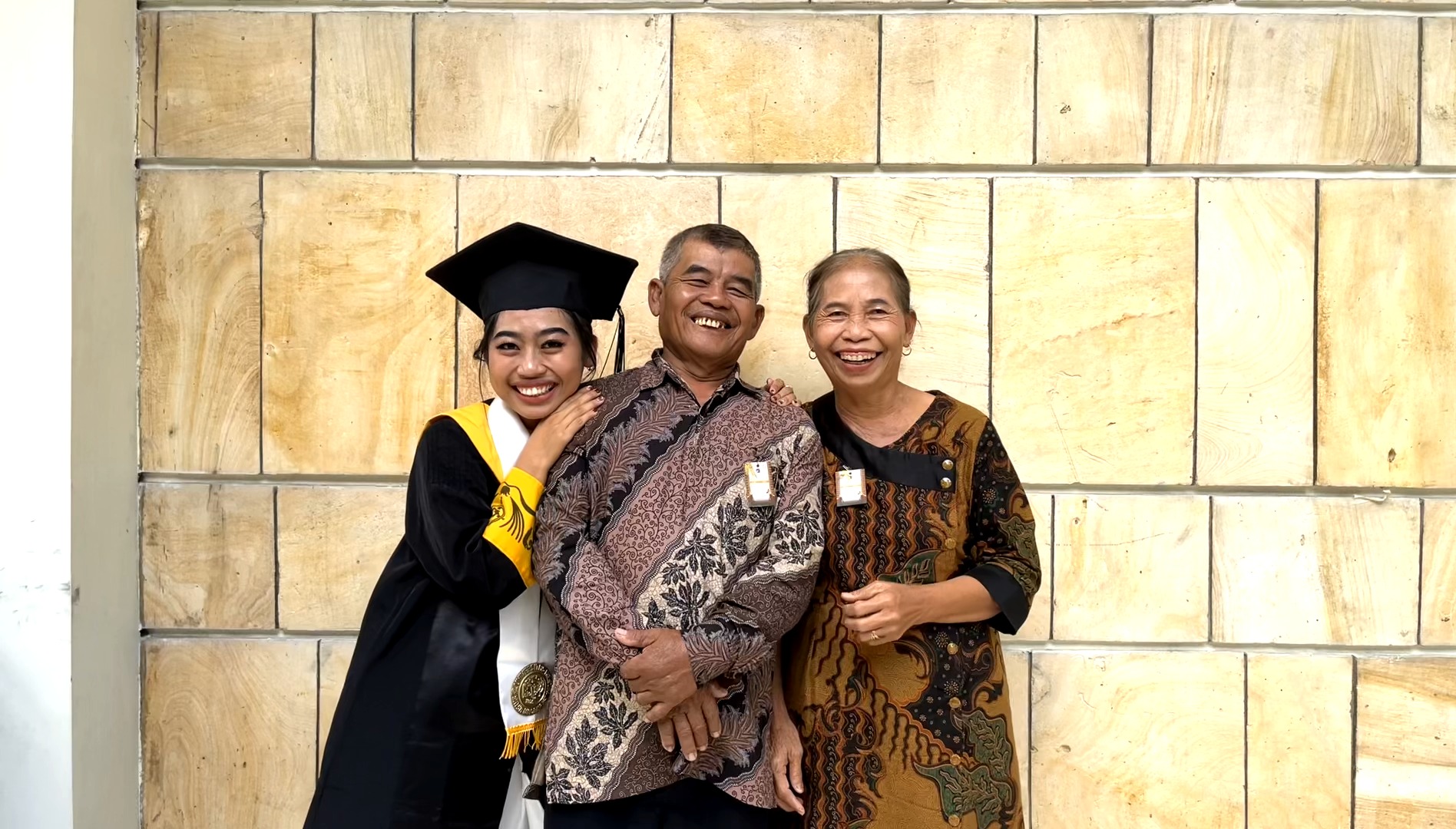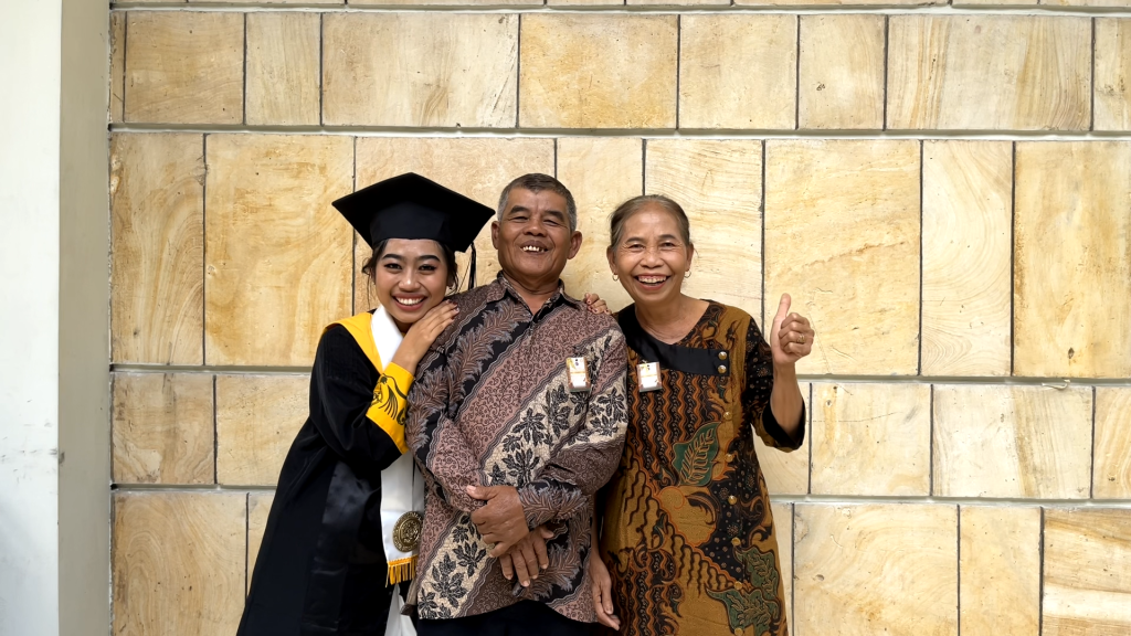 Upacara Wisuda Periode III Tahun 2024 Universitas Kristen Satya Wacana (UKSW) telah usai, namun luapan rasa kebahagiaan dan haru masih membekas begitu kuat. Tidak terkecuali bagi pasangan suami istri, Tukijan dan Ratiem, yang dalam momen menyentuh tersebut memperlihatkan kebahagiaan tak terhingga melihat putri bungsu mereka, Grace Ades Yulita, menerima gelar sarjana dari Program Studi Psikologi, Fakultas Psikologi UKSW.