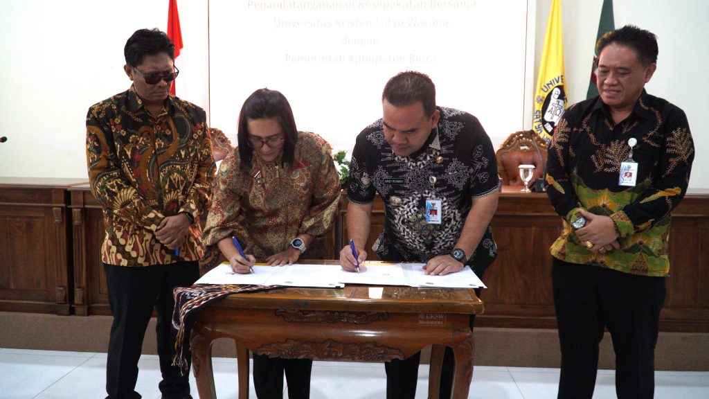 Universitas Kristen Satya Wacana (UKSW) resmi menjalin kerja sama dengan Pemerintah Kabupaten Blora, ditandai dengan ditandatanganinya Nota Kesepahaman pada Rabu (6/3/2024), di Grha Kartini. Nota kesepahaman ditandatangani oleh Rektor UKSW Prof. Dr. Intiyas Utami, S.E., M.Si., Ak., dan Bupati Kabupaten Blora Arief Rohman, S.IP., M.Si.
