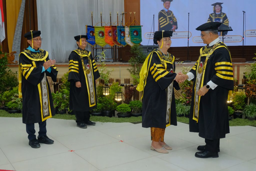 Melalui Rapat Terbuka Senat yang berlangsung di Balairung Universitas, beliau dikukuhkan oleh Rektor UKSW Prof. Dr. Intiyas Utami, S.E., M.Si., Ak., bersama dengan dua guru besar lainnya yaitu Prof. Didit Budi Nugroho, S.Si., M.Si., D.Sc., sebagai Guru Besar Ilmu Statistika Fakultas Sains dan Matematika (FSM) serta Prof. Dr. Agus Sugiarto, S.Pd., M.M., sebagai Guru Besar Ilmu Manajemen FEB.