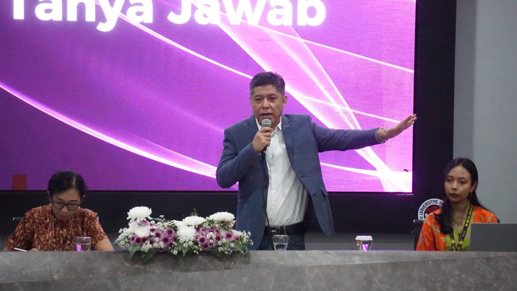 Dra. Lina Sinatra Wijaya mengucapkan terima kasihnya kepada Ir. Eko Toba Simanjuntak, M.M., dan seluruh peserta yang mengikuti kuliah tamu ini.
