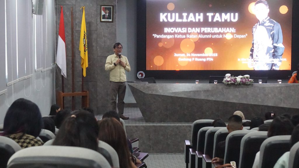 Ratusan mahasiswa dari berbagai lintas fakultas di Universitas Kristen Satya Wacana (UKSW) tampak antusias mengikuti kuliah tamu yang digelar oleh Direktorat Kealumnian dan Karier (DKK), Jumat (24/11/2023). Kegiatan yang diselenggarakan di Gedung F Ruang 114 ini mengusung tema “Inovasi dan Perubahan: Pandangan Ketua Ikatan Alumni untuk Masa Depan”.