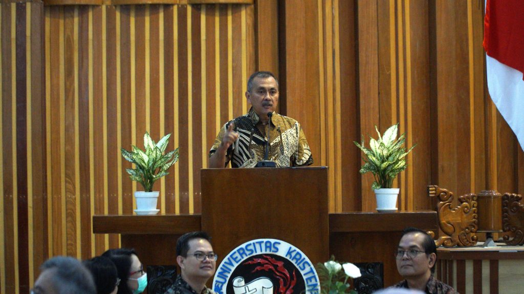 Dalam sapaan hangatnya, Prof. Eko Sediyono menyampaikan bahwa pemilihan umum (pemilu) menjadi bagian penting dalam kehidupan demokrasi Indonesia sehingga harus dilaksanakan dengan damai dan sehat melalui tata demokrasi yang jelas. “Kegiatan ini merupakan salah satu upaya untuk mewujudkan pemilu yang sehat dan mendukung proses demokrasi yang damai, serta memberikan pendidikan politik kepada pemilih pemula dan masyarakat umum,” jelasnya.