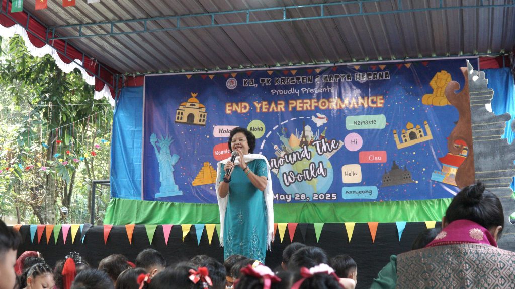 Mengawali acara tersebut, Kepala Sekolah TK Kristen 1 Satya Wacana Jufitri, S.Pd., AUD., menyapa serta memberikan semangat untuk anak-anak, beliau menyampaikan bahwa kegiatan ini merupakan bekal bagi anak mengenal dunia.