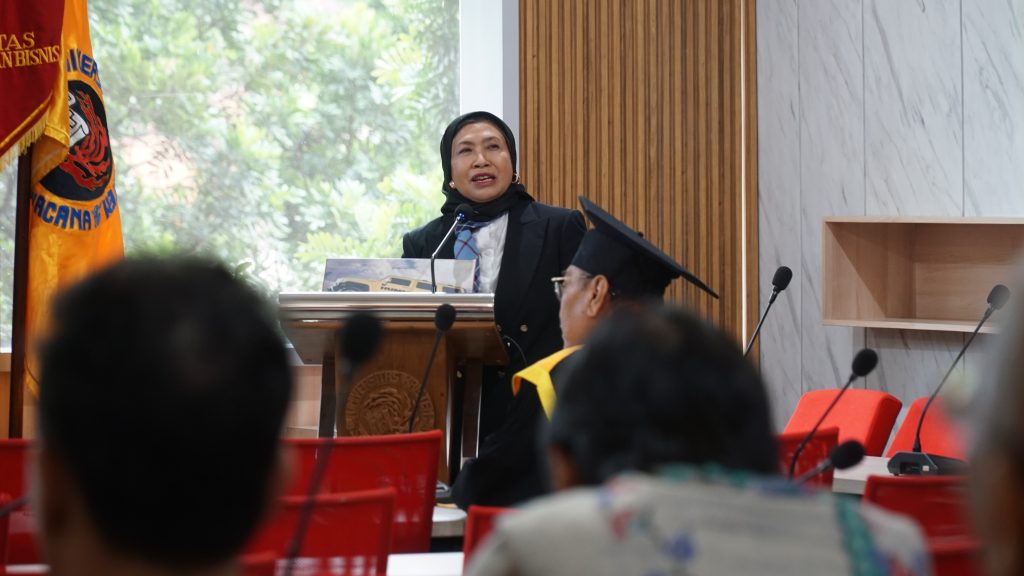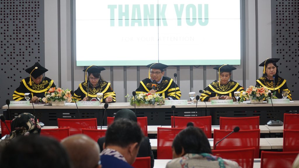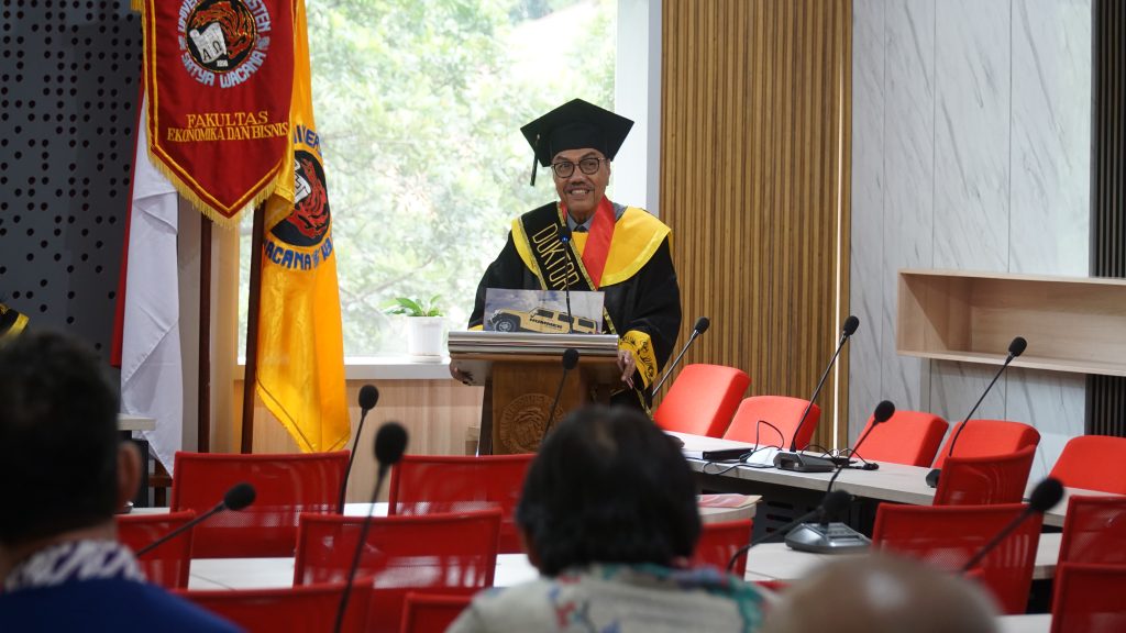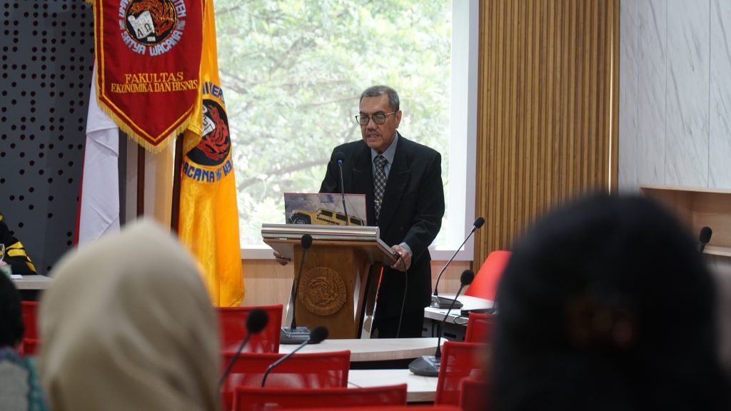 Dipimpin oleh Dekan FEB Dr. Yefta Andi Kus Noegroho, S.E., M.Si., Ak., CMA., CA., yudisium ini diisi dengan pemaparan disertasi oleh Witjaksono di hadapan para promotor, ko-promotor, penguji, hingga tamu undangan. Disertasinya yang berjudul “Bias Perilaku dan Bias Investasi di UMKM: Studi Empiris UMKM Tenun Troso Jepara” menjadi kontribusi akademis berharga dari sosok kelahiran 1960 tersebut dalam mendukung perkembangan ilmu manajemen.