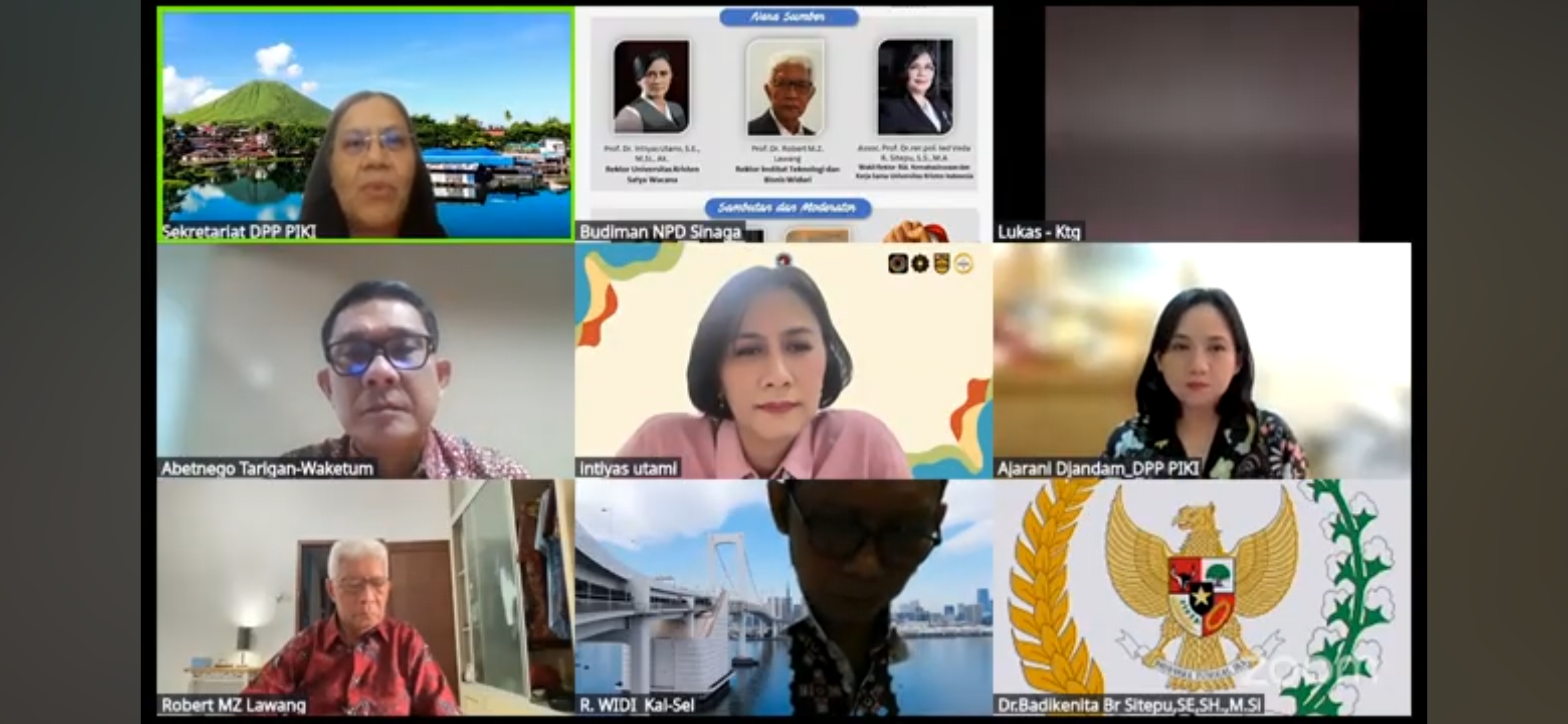 Rektor Universitas Kristen Satya Wacana (UKSW) Profesor Intiyas Utami menjadi salah satu pembicara kunci dalam Webinar Nasional yang diselenggarakan oleh Dewan Pimpinan Pusat Persatuan Inteligensia Kristen Indonesia (DPP PIKI), Jumat (6/6/2025) sore. Webinar yang mengangkat tema “Strategi Meningkatkan Nasionalisme dalam Memaknai 117 Tahun Kebangkitan Nasional Menuju Indonesia Emas 2045” ini diikuti oleh anggota DPP PIKI dari seluruh Indonesia dan diselenggarakan secara daring melalui platform zoom.