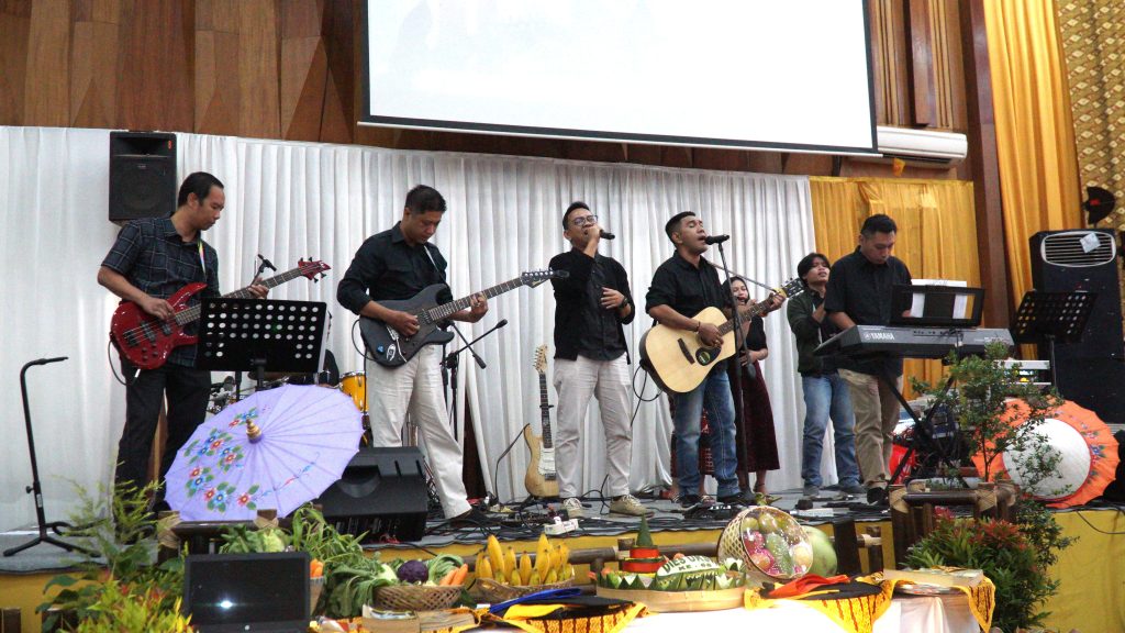 Tampil berbeda, Konsorsium BHINNEKA yang terdiri dari Fakultas Teknologi Informasi (FTI) Fakultas Interdisiplin (FID), dan Fakultas Teknik Elektronika dan Komputer (FTEK) mengemas penampilannya dalam band dan menyanyikan lagu “Mengejar Hadir-Mu”.
