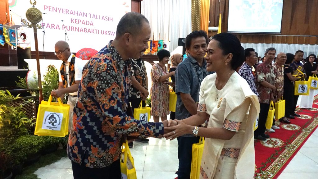 Dalam kesempatan Ibadah Syukur Dies Natalis juga diberikan tali asih kepada 27 dosen dan tenaga kependidikan yang telah purna bakti. Tali asih diberikan oleh Pengurus YPTKSW didampingi Rektor UKSW.