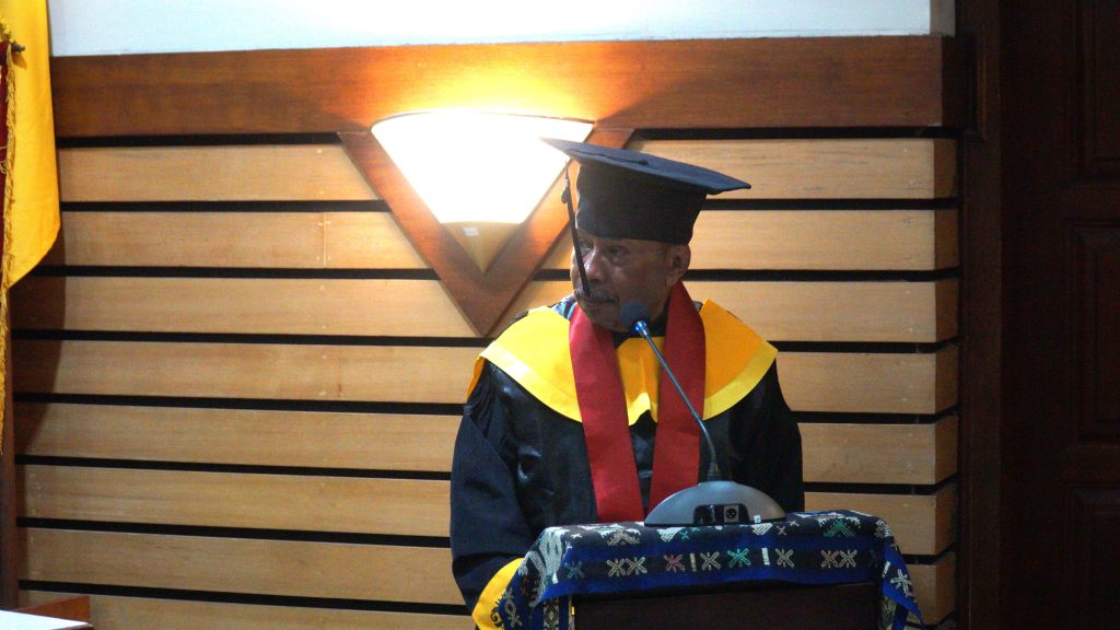 Dalam sambutannya, Dr. Imanuel Warikar mengungkapkan rasa syukur dan terima kasih atas perjalanan panjang yang ia lalui. “Saya menerima semua proses ini sebagai bagian yang membentuk saya. Pendidikan ini tidak mudah, tetapi saya percaya, selama kita tetap berjalan mengikuti alurnya, pasti akan sampai di garis akhir,” ujarnya.