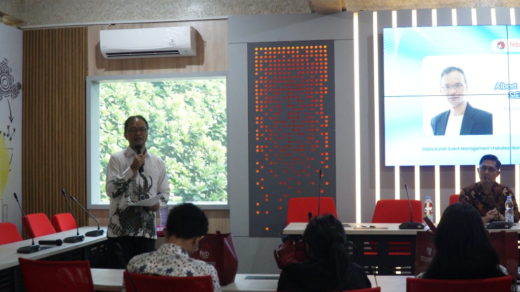 Menyambut dengan hangat, Kepala Departemen Manajemen Albert Kriestian Novi Adhi Nugraha, S.E., M.M., Ph.D., mengucapkan rasa syukur atas digelarnya kegiatan ini. Ia juga menyoroti kerja keras mahasiswa Prodi Manajemen yang mengambil mata kuliah Event Management dalam menyelenggarakan acara ini sebagai bagian dari pembelajaran praktis mereka.