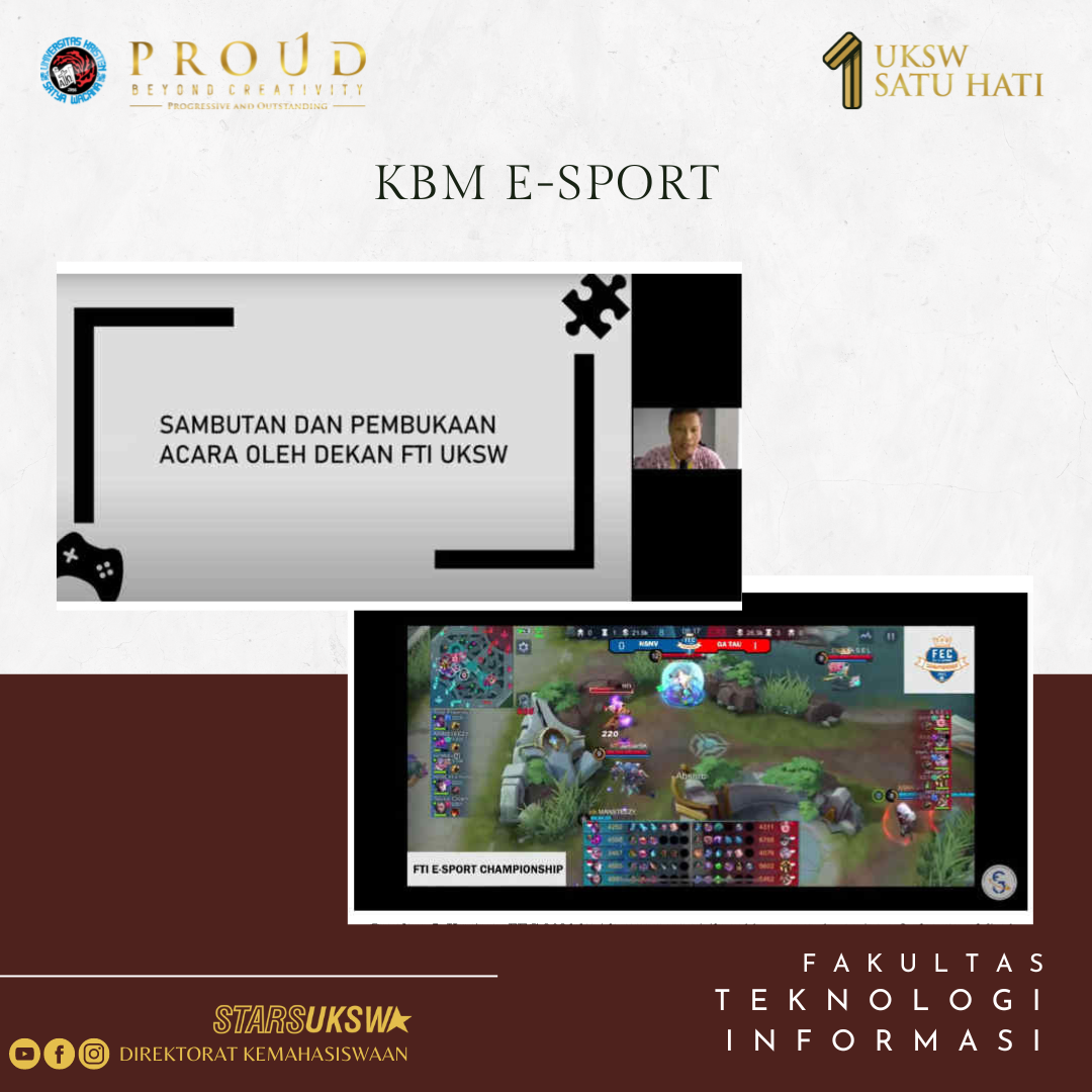 KBM e-sPORT Didirikan oleh bidang I Senat Mahasiswa Fakultas Teknologi Informasi UKSW sebagai sarana penunjang bakat dan minat non akademik di bidang olahraga elektronik. dengan adanya KBM E-sport di harapkan dapat membantu mahasiswa untuk meningkatkan sikap kepemimpinan dan sportivitas FTI UKSW melalui KBM E-Sport. Selain itu mahasiswa FTI UKSW dapat memahami taktik permainan E-sport yang lebih efektif dan dapat mengembangkan skill.