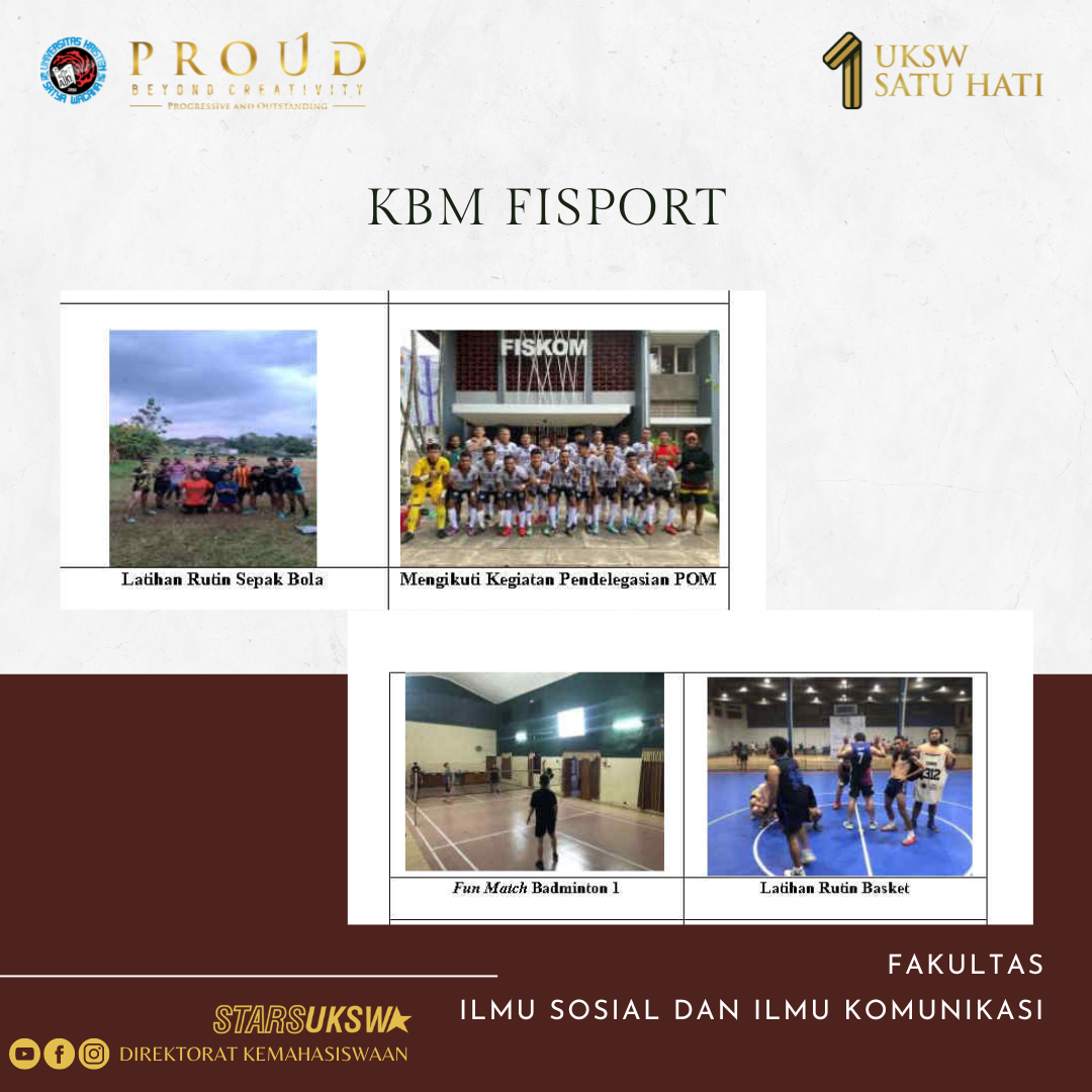 KBM FISKOM Sport 2023 (FISPORT) berawal dari gagasan sekumpulan mahasiswa mahasiswi Fiskom yang memiliki hobi dibidang olahraga visi FISPORT adalah menjadi sarana mahasiswa mahasiswi fiskom yang menghasilkan karya di bidang olahraga yang unggul terampil dan inovatif. Misi FISPORT adalah menyelnggarakan pembelajaran rutin di bidang olahraga yang bermanfaat dan bermutu selain itu merupakan wadah menyalurkan ide dan bakat olahraga serta mengasah bakat dan kemampuan olahraga melalui 4 cabang olahraga yang tersedia yakni bulu tangkis, basket, futsal, dan sepak bola.
