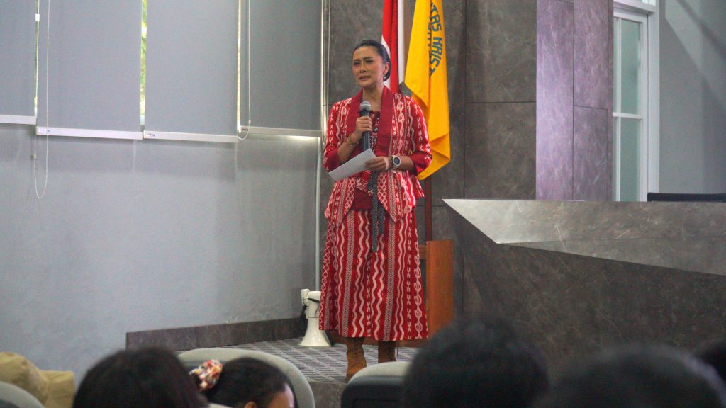 Rektor UKSW Prof. Dr. Intiyas Utami, S.E., M.Si., Ak., turut memberikan sambutan hangatnya saat para peserta tiba di Kota Salatiga, Selasa (25/06/2024) malam, di Pendopo Kantor Dewan Perwakilan Rakyat Daerah (DPRD) Salatiga.