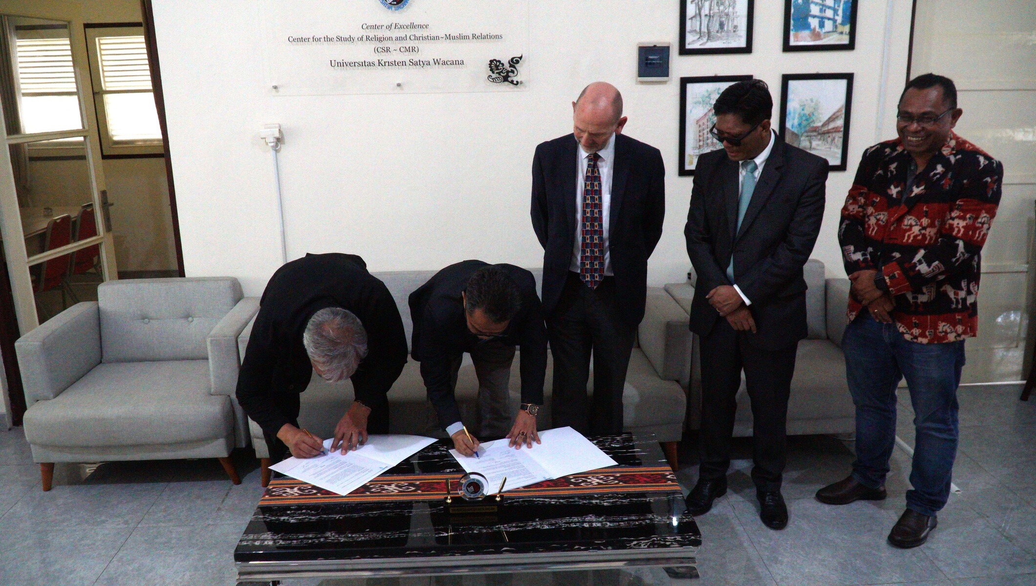 Penandatanganan MoA CSR-CMR UKSW dan Oxford Center for Muslim-Christian Studies dilakukan oleh Kepala CSR-CMR UKSW Sumanto Al Qurtuby, Ph.D., bersama Director Oxford Center for Muslim-Christian Studies Dr. Richard McCallum. Sementara itu, penandatangan MoA antara CSR-CMR UKSW dan Center for Interdisciplinary Studies on Religion and Culture ditandatangani oleh Kepala CSR-CMR UKSW Sumanto Al Qurtuby, Ph.D., dengan Director Center for Interdisciplinary Studies on Religion and Culture Dr. Ferry Yefta Mamahit.
