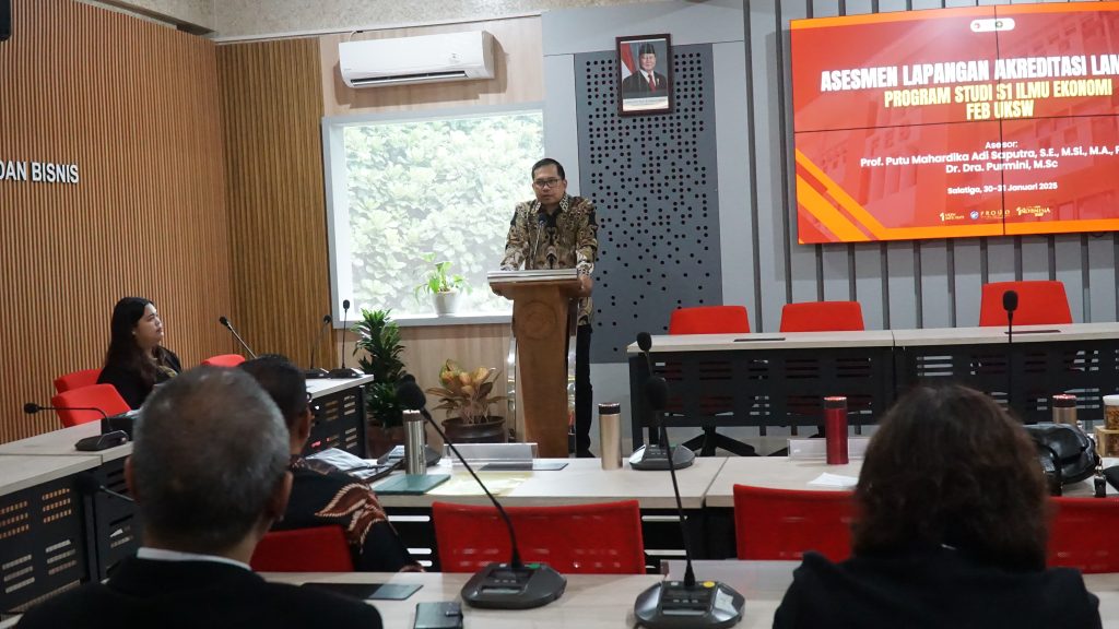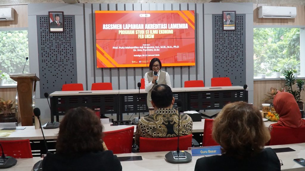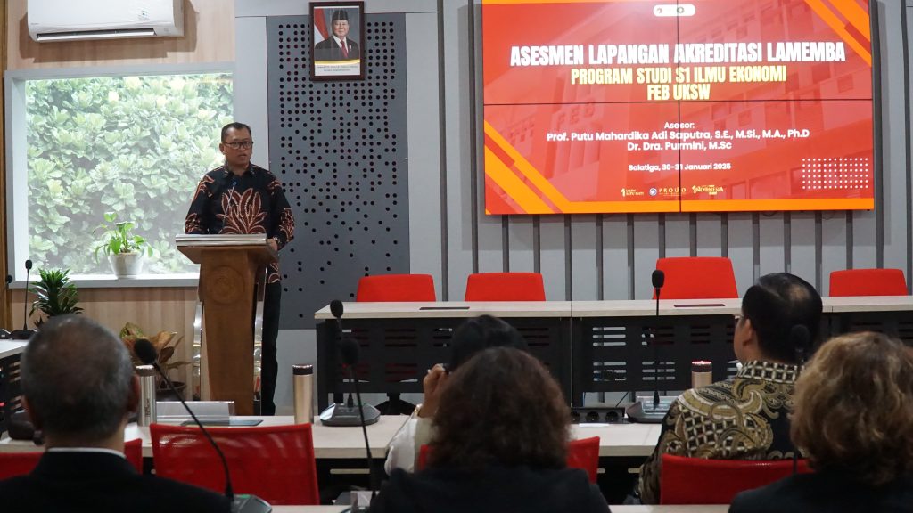 Komitmen Universitas Kristen Satya Wacana (UKSW) dalam menjaga dan meningkatkan mutu akademik kembali diuji melalui Asesmen Lapangan Akreditasi Program Studi S1 Ilmu Ekonomi, Fakultas Ekonomika dan Bisnis (FEB), Kamis dan Jumat (30 dan 31/01/2025). Asesmen ini dilaksanakan oleh Lembaga Akreditasi Mandiri Ekonomi Manajemen Bisnis dan Akuntansi (LAMEMBA) dengan menghadirkan dua asesor terkemuka, yakni Prof. Putu Mahardika Adi Saputra, S.E., M.Si., M.A., Ph.D., dari Universitas Brawijaya dan Dr. Dra. Purmini, M.Sc., dari Universitas Bengkulu (UNIB).