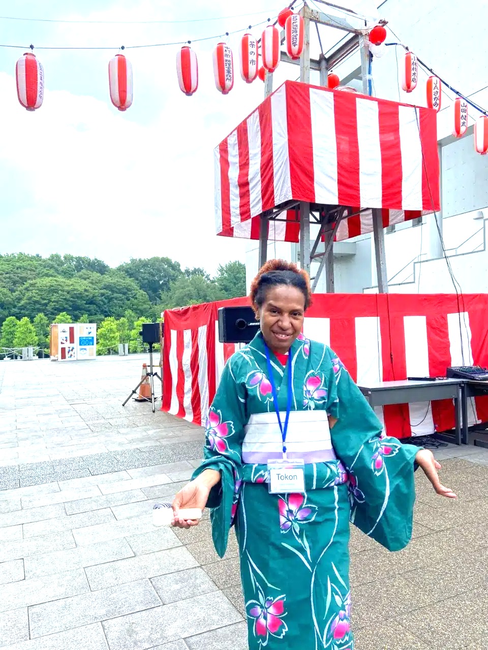 Tokon adalah satu dari empat mahasiswa UKSW yang mengikuti program pertukaran musim panas ini. Dalam kegiatan Indonesian Night Practice, ia tampil mengenakan busana adat perempuan Suku Ngalum Pegunungan Bintang, daerah asalnya di Papua Pegunungan.
