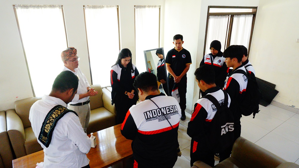Wakil Rektor Bidang Pengajaran, Akademik dan Kemahasiswaan (WR PAK) Universitas Kristen Satya Wacana (UKSW) Prof. Dr. Ferdy Samuel Rondonuwu, S.Pd., M.Sc., Ph.D., melepas secara resmi tim Kelompok Bakat Minat (KBM) Satya Wacana Karate Club (SWKC) yang akan mengikuti kejuaraan internasional, Senin (05/09/2023) di VIP Room Balairung Universitas.