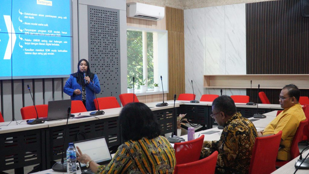 Peserta pertama, Silvia Jultikasari Febrian dari Universitas Islam Indonesia, mempresentasikan paper-nya yang berjudul “Menggapai SDGs: Tantangan dan Solusi bagi UMKM terhadap Pinjaman Digital Predator”. Silvia mengusulkan Program Edukasi “MENYALA” yang bertujuan meningkatkan literasi finansial dan teknologi bagi Usaha Mikro Kecil dan Menengah (UMKM) untuk mendukung pertumbuhan ekonomi dan SDGs.