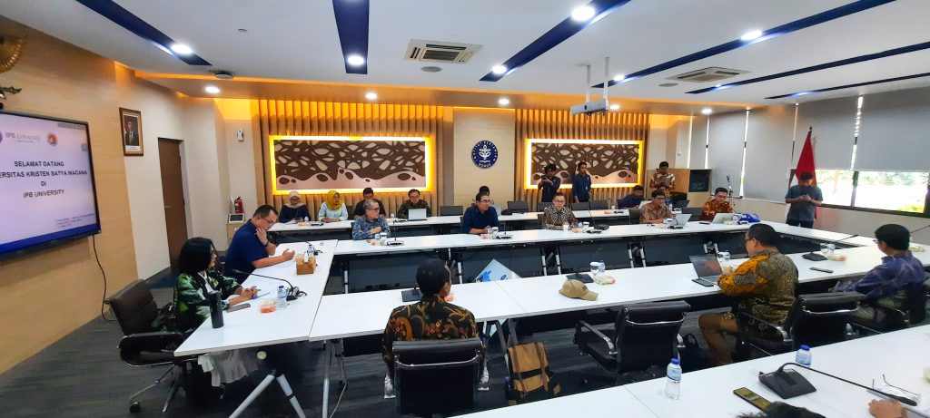 Rektor Intiyas menyampaikan tujuan utama kunjungan ini adalah mempelajari strategi IPB dalam membangun reputasi sebagai universitas berkelas dunia. “Kami ingin belajar bagaimana IPB mampu mengembangkan inovasi berbasis teknologi dan pemberdayaan masyarakat secara optimal. Ini menjadi inspirasi besar bagi kami di UKSW untuk terus berinovasi menuju world class university,” ungkapnya.