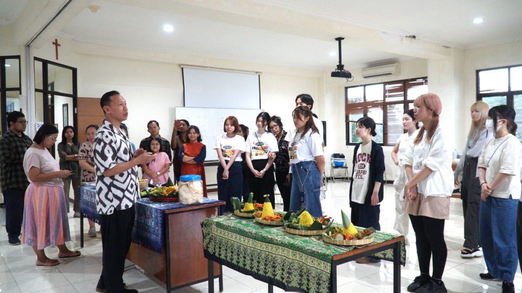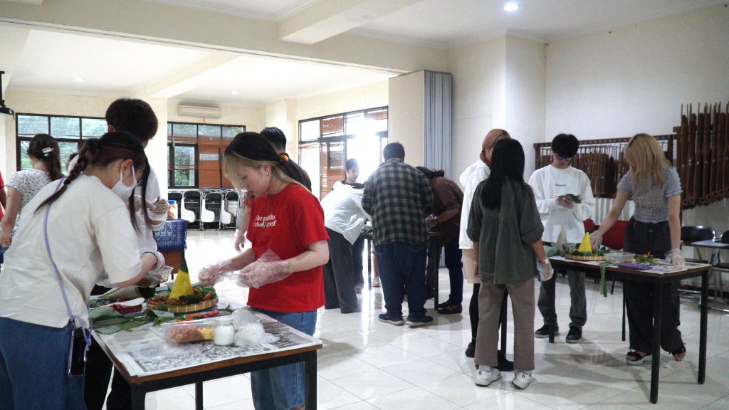 Momen pembelajaran bahasa dan budaya mahasiswa Jepang di UKSW terasa istimewa. Mereka tidak sekadar belajar bahasa Indonesia dalam ruang kelas, tetapi juga mengalami budaya secara langsung. Kali ini, bersama mahasiswa UKSW, mereka diajak membuat tumpeng, ikon kuliner khas Indonesia yang sarat akan filosofi. Dengan teliti dan penuh antusiasme, mereka menata nasi berbentuk kerucut yang melambangkan harapan serta kesejahteraan, dihiasi beragam lauk yang kaya akan rasa dan makna.