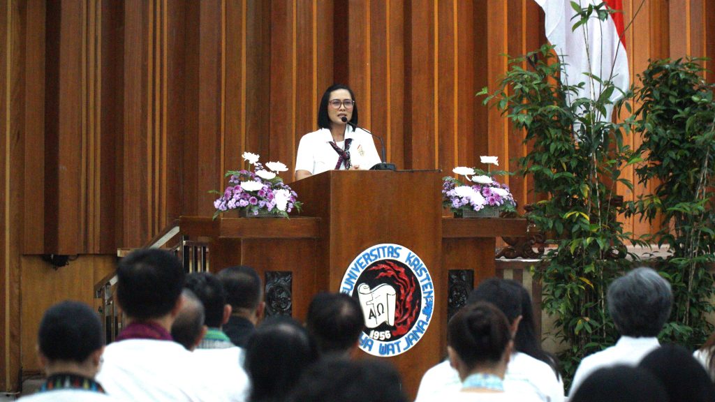 Rektor UKSW Prof. Dr. Intiyas Utami, S.E., M.Si., Ak., turut memberikan ucapan selamat dan apresiasi atas dedikasi yang telah ditunjukkan oleh seluruh civitas academica Fakultas Psikologi. “Perjalanan ini penuh dinamika, namun kesatuan hati menjadi kekuatan kita. Mari tingkatkan kolaborasi dan komunikasi untuk memantapkan langkah kita menuju World Class University (WCU),” ujarnya, memotivasi semua yang hadir.