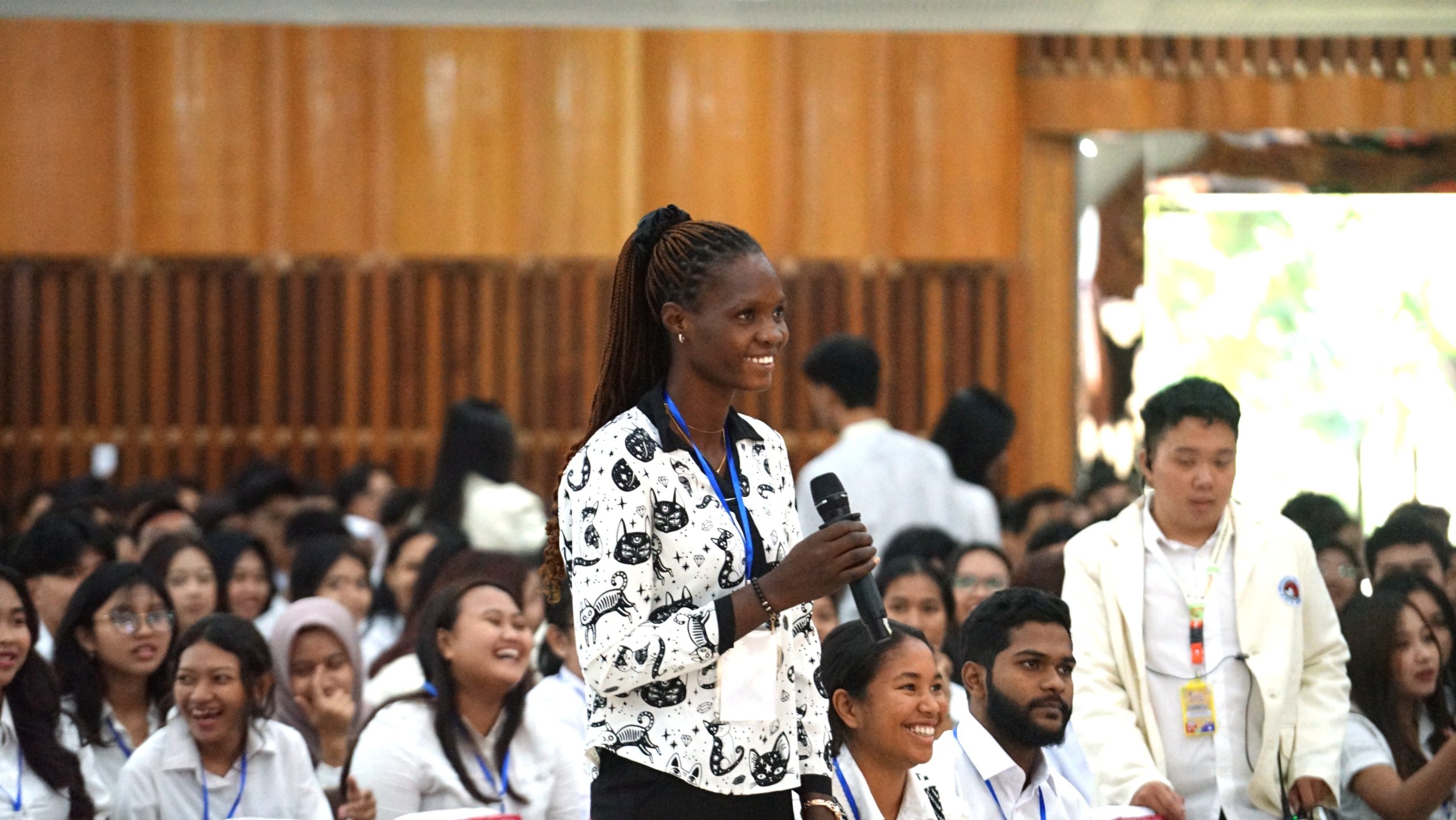 Cerita serupa datang dari mahasiswa internasional lainnya, Ntadi Lassim Theodora, mahasiswa baru Prodi Sosiologi Fakultas Ilmu Sosial dan Ilmu Komunikasi (FISKOM) yang membagikan kesan hangatnya mengikuti OMB. “Kegiatan OMB sangat menyenangkan, saya mendapat banyak teman baru dan kegiatan terasa seru. Saya terkesan dengan kedisiplinan serta fokus UKSW pada pendidikan, keterampilan, dan sikap. Itu membuat saya semakin bersemangat untuk beradaptasi,” ujarnya.