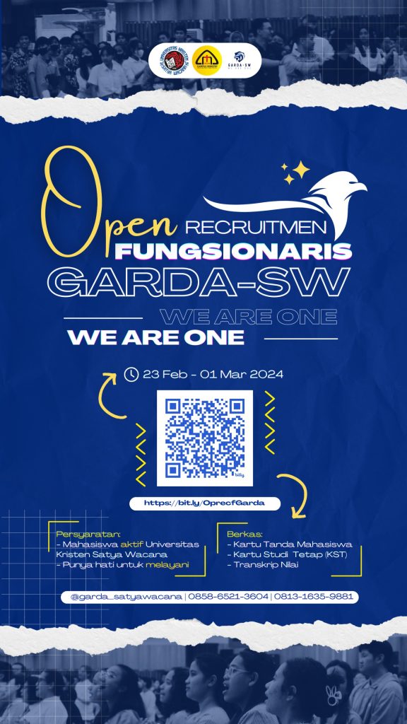 Gbungan Persekutuan Doa Fakultas se-UKSW (GARDA-SW) mengadakan Open Recruitment Fungsionaris GARDA-SW mulai 23 Februari sampai dengan 1 Maret 2024.