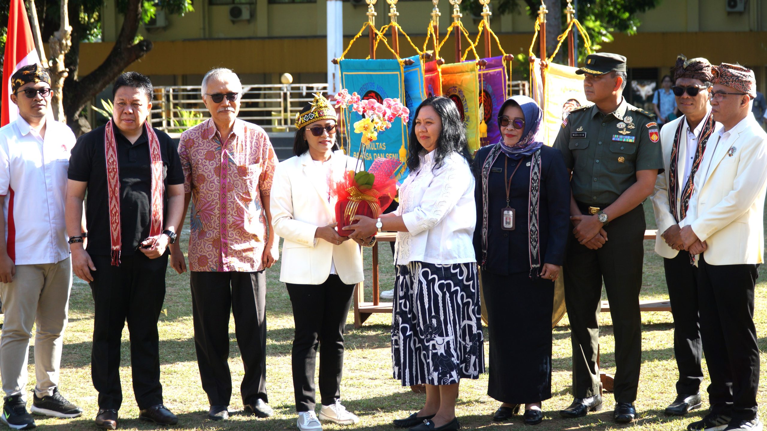 Setelah itu, perwakilan orang tua maba, Susiana menyerahkan bibit bunga anggrek kepada Rektor Intiyas sebagai simbol kepercayaan menitipkan putra putrinya kepada UKSW untuk tumbuh bersama, ditempa dan dididik menjadi generasi muda yang tangguh, tidak mudah menyerah, dan siap menghadapi segala kondisi.