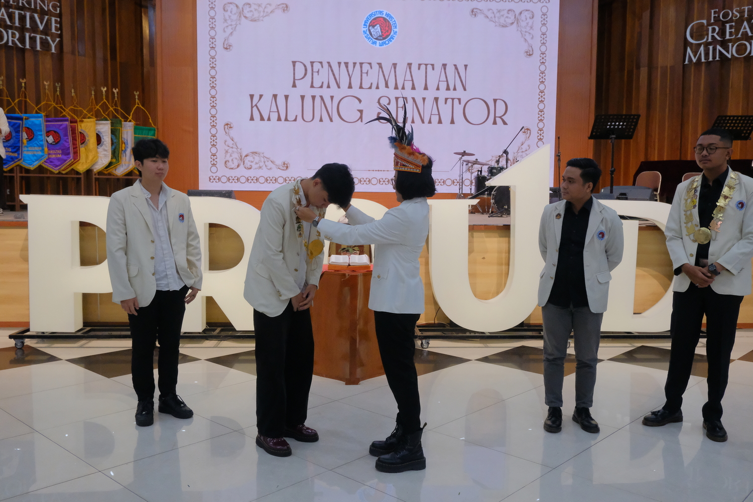 Pelantikan yang berlangsung khidmat di Balairung Universitas ini ditandai dengan pemukulan gong dan pengalungan Kalung Senator oleh Rektor Intiyas kepada Ketua Umum Badan Perwakilan Mahasiswa Universitas (BPMU) Aristo Talin Coeputra, mahasiswa Fakultas Teknologi Informasi (FTI) dan Ketua Umum Senat Mahasiswa Universitas (SMU) Kenneth Nathanael Timothy Punuh, mahasiswa Fakultas Teologi. Dilanjutkan dengan penyerahan Laporan Pertanggungjawaban (LPJ) Akhir dan memorandum dari kepengurusan Lembaga Kemahasiswaan periode sebelumnya.