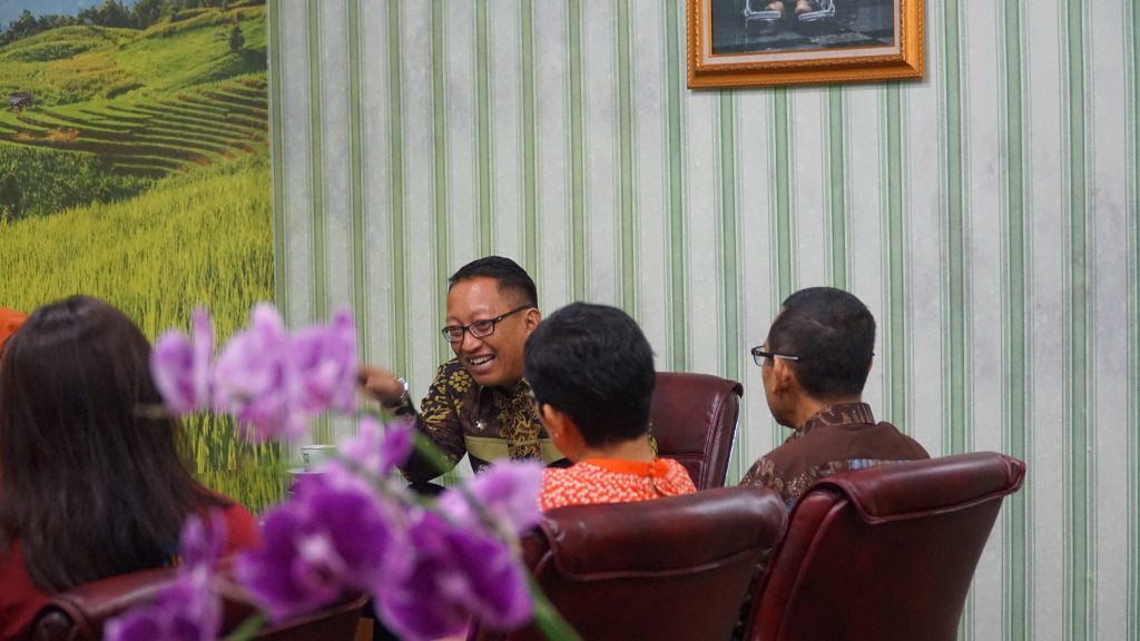 Wakil Rektor Bidang Riset, Inovasi dan Kewirausahaan (RIK) Universitas Kristen Satya Wacana (UKSW) Prof. Dr. Ir. Eko Sediyono, M.Kom., bersama Manajer Voice of Satya Wacana Christian University (SWCU) Juanita Theresia Adimurti, S.Sn., M.Pd., serta empat perwakilan mahasiswa yang tergabung dalam Voice of SWCU berkesempatan melakukan audiensi dengan Penjabat (Pj) Wali Kota Salatiga Drs. Sinoeng Noegroho Rachmadi, S.E., M.M., Selasa (03/10/2023).