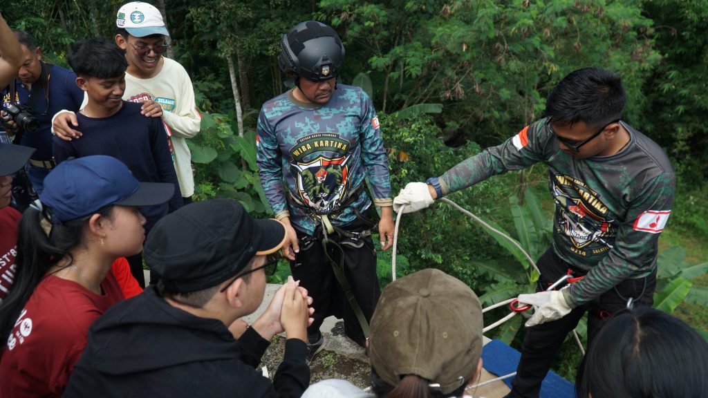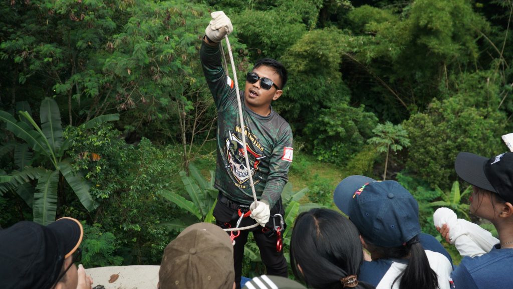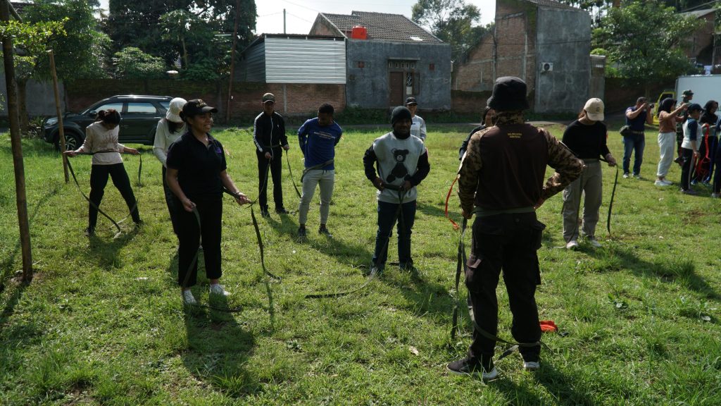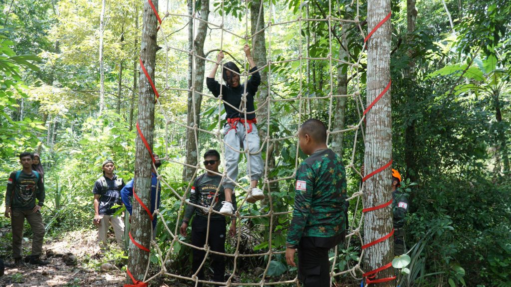 Dengan penuh semangat peserta mengikuti seluruh rangkaian permainan. Sebelum memulai aktivitas outbound bela negara, masing-masing peserta diperlengkapi dengan perlengkapan keselamatan diantaranya harness, karabiner, dan helm keamanan panjat tebing. Secara bergilir peserta melakukan permainan demi permainan, mereka terlihat memberikan semangat satu sama lain.