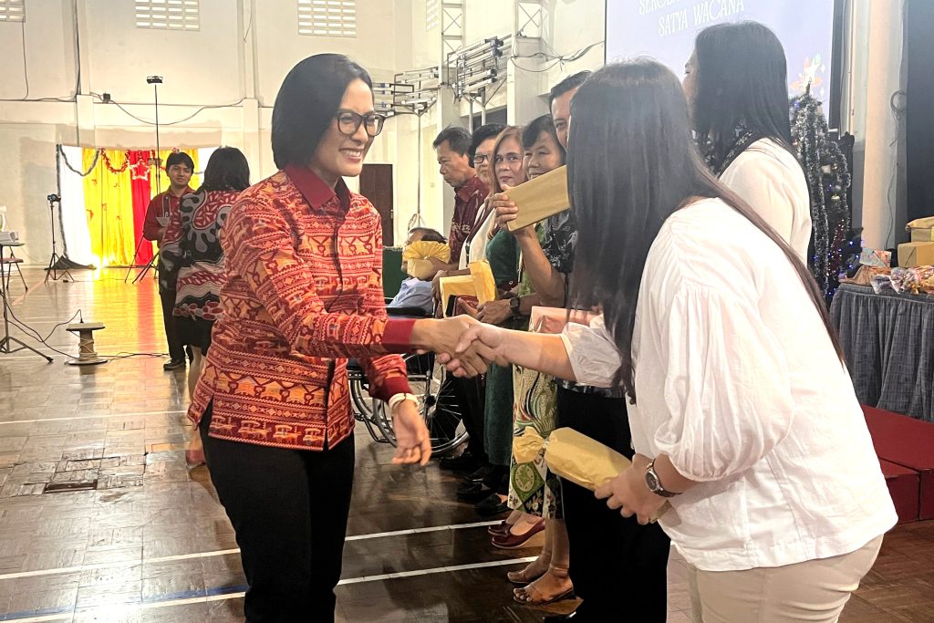 Turut merayakan sukacita Natal, Rektor Universitas Kristen Satya Wacana (UKSW) Prof. Intiyas Utami dalam sambutannya menyampaikan apresiasi kepada keluarga besar Sekolah Kristen Satya Wacana dalam menghidupkan nuansa harmoni. Sebagai sekolah yang ia nilai unggul, Rektor Intiyas mengajak Sekolah Kristen Satya Wacana untuk terus berkolaborasi.