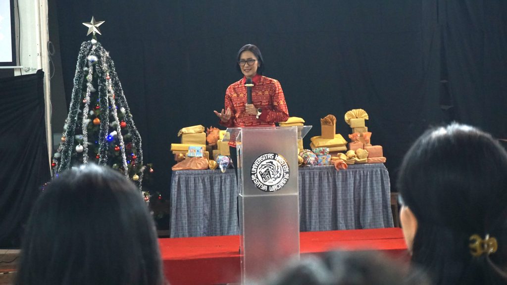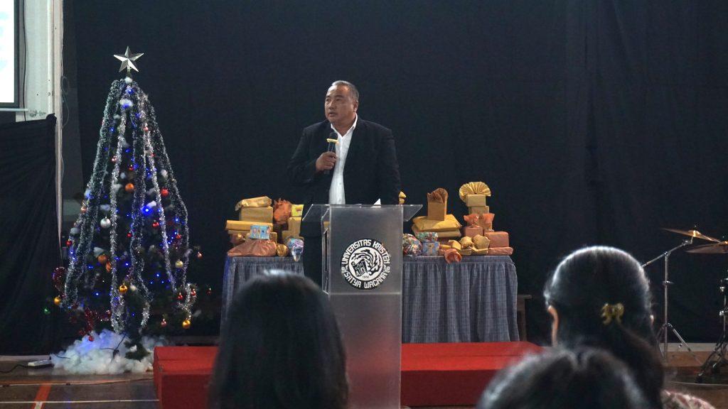 Rektor Intiyas tidak ketinggalan menekankan agar proses belajar dibersamai pula dengan nilai yang tercantum dalam motto UKSW di Amsal 1:7a berbunyi Takut Akan Tuhan adalah Permulaan Pengetahuan, serta karakteristik Satya Wacana. “Dalam semangat terang Natal, mari kita hadirkan pembelajaran menuju masa depan yang terintegrasi dan bisa memberikan bibit Creative Minority,” katanya.