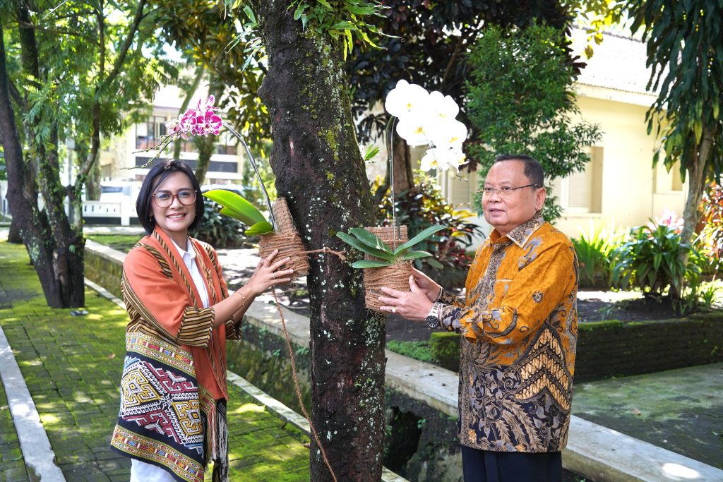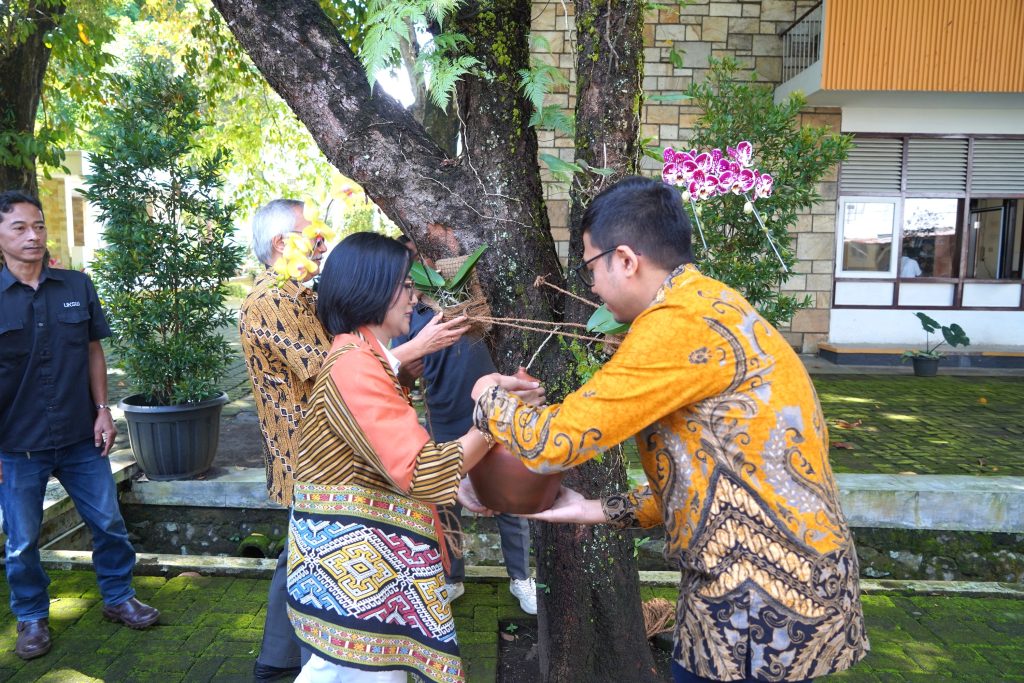 Pengikatan ini diawali oleh Rektor bersama Rektor UNPAM Dr. Nurzaman dengan cara mengikat anggrek bulan ke batang pohon serta bersama-sama menyiramnya dengan kendi tanah liat, kegiatan ini merupakan simbol akan pentingnya menjaga serta merawat kelestarian lingkungan. (Ctr_TimKomblik/foto:Des, PH)