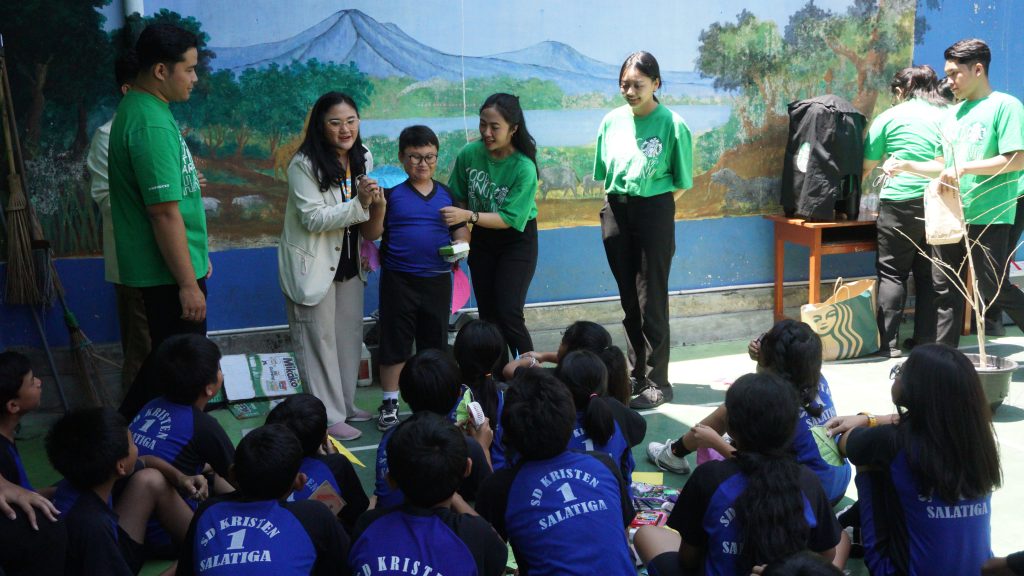 Atmosfer penuh semangat dan keceriaan kental terasa dalam kegiatan edukatif yang digelar oleh Program Studi (Prodi) Pendidikan Guru Sekolah Dasar (PGSD) Fakultas Keguruan dan Ilmu Pendidikan (FKIP) Universitas Kristen Satya Wacana (UKSW) bersama Starbucks Salatiga di Sekolah Dasar (SD) Kristen 1 Salatiga, Jumat (06/09/2024).