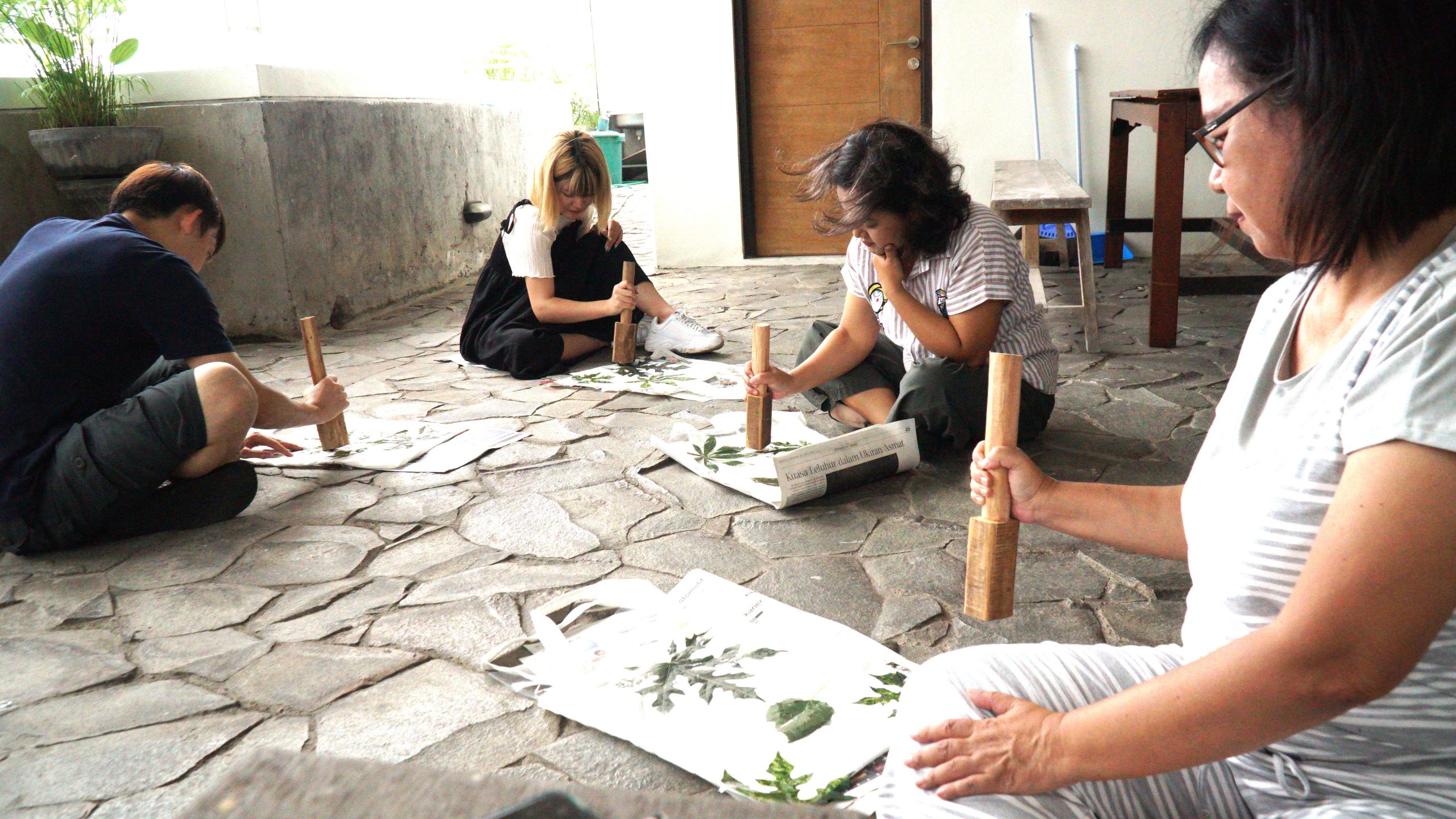 Di sisi lain, Ernastyono, S.Pd., mengungkapkan bahwa kegiatan membuat batik ecoprint ini sangat baik untuk diperkenalkan kepada mahasiswa asing. Menurutnya, kegiatan membatik dengan teknik pounding ini dilakukan dengan cara yang sangat sederhana dan bahan yang mudah didapatkan.
