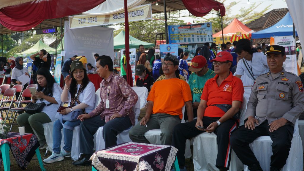 Tampak ratusan masyarakat umum memadati Lapangan Pancasila Desa Bringin, Kecamatan Bringin, Kabupaten Semarang, dalam acara keakraban Program Studi (Prodi) Pendidikan Matematika Fakultas Keguruan dan Ilmu Pendidikan (FKIP) Universitas Kristen Satya Wacana (UKSW), Sabtu (07/10/2023).