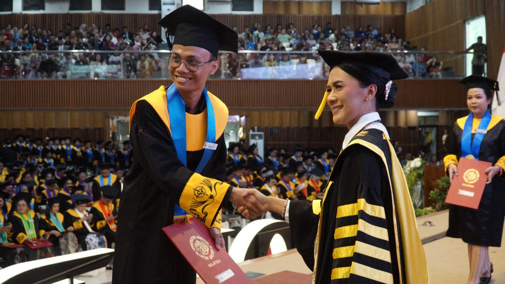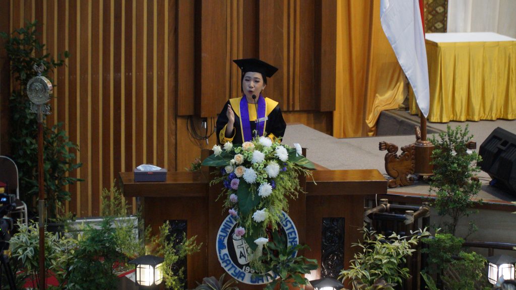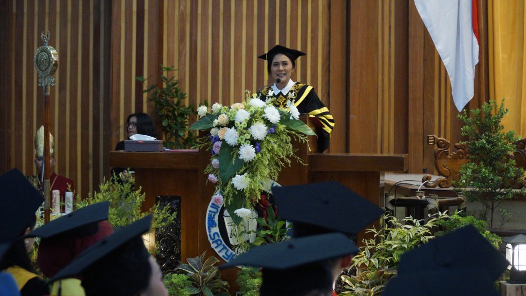 “Rekan-rekan lulusan, kita adalah bagian dari sejarah UKSW dan UKSW adalah bagian dari sejarah perjalanan hidup kita. UKSW sendiri telah menjadi tempat bagi kita untuk belajar, memberi ruang untuk berkolaborasi serta mendorong kita untuk memberi dampak bagi sesama manusia dan lingkungan,” bebernya.
