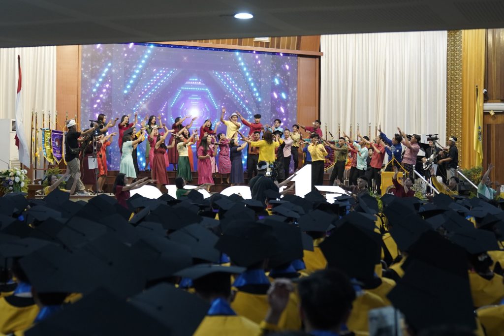 Kepada para lulusan, Rektor Intiyas berharap di era yang serba tidak pasti ini para lulusan sebagai creative minority tetap kritis dan berkontribusi untuk mengatasi permasalahan bangsa. “Saya yakin para lulusan mampu menjadi teladan di manapun nanti kalian bekerja atau melayani”, imbuhnya.