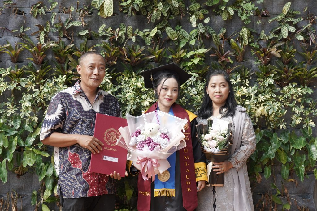 Selain itu, Oliviani Yanto, S.H., juga mengucapkan terima kasih kepada seluruh pihak yang mendukung masa studinya di UKSW. “Terima kasih yang tiada habisnya kepada seluruh dosen dan tenaga kependidikan yang telah dengan sepenuh hati memberikan pelayanan yang terbaik untuk kami. Kami tidak hanya memperoleh ilmu pengetahuan, tetapi juga nilai-nilai kehidupan yang akan selalu kami bawa ke manapun kami melangkah,” ujarnya.