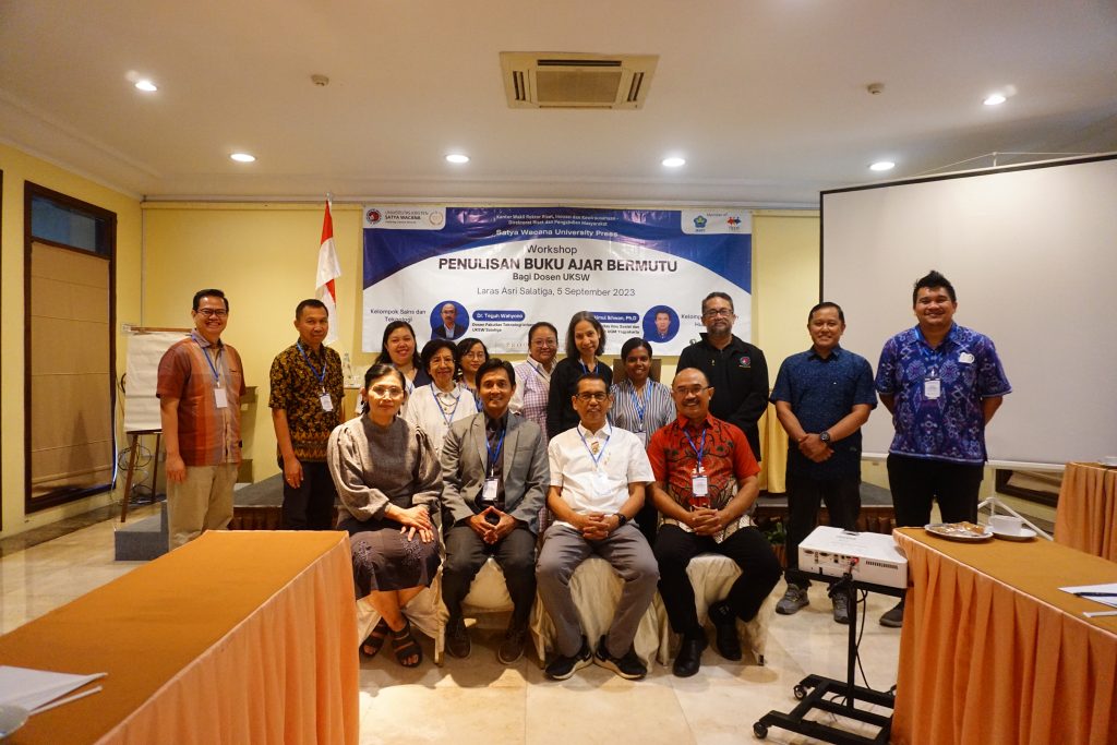 Satya Wacana University Press (SWUP) menyelenggarakan kegiatan Workshop Penulisan Buku Ajar Bermutu bagi Dosen Universitas Kristen Satya Wacana (UKSW), Selasa (05/09/2023) di Ruang Merbabu, Laras Asri Resort & Spa Kota Salatiga. Dua narasumber yaitu Dosen Fakultas Teknologi Informasi (FTI) Dr. Teguh Wahyono, S.Kom, M.Cs., dan Dosen Departemen Sosiologi Fakultas Ilmu Sosial dan Ilmu Politik Universitas Gadjah Mada (UGM) Yogyakarta Hakimul Ikhwan, Ph.D., dihadirkan dalam kegiatan workshop ini.