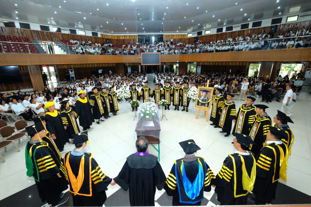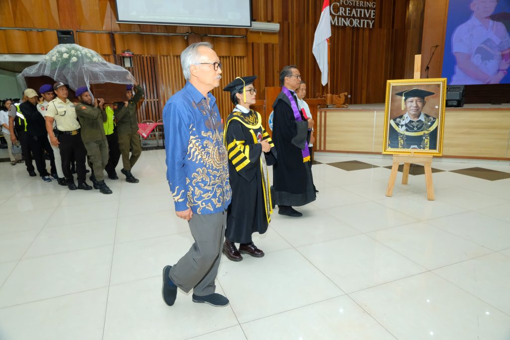 Ratusan civitas academica, keluarga, dan kolega berkumpul di Balairung UKSW pada Jumat (25/10/2024) untuk memberikan penghormatan terakhir dalam Acara Penghormatan Terakhir dan Pelepasan sebelum jenazahnya dibawa ke tempat peristirahatan terakhir di TPU Ngemplak.