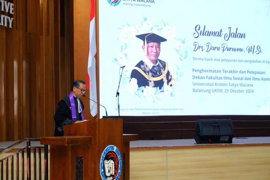 “Terima kasih atas penghormatan dan penghiburan bagi kami. UKSW bukan hanya tempat bekerja bagi almarhum, tapi sudah menjadi rumah kedua baginya,” ujar Bagus, menggambarkan kebanggaan keluarga terhadap dedikasi yang tak pernah pudar dari Drs. Daru yang telah mengabdi selama 37 tahun di UKSW.
