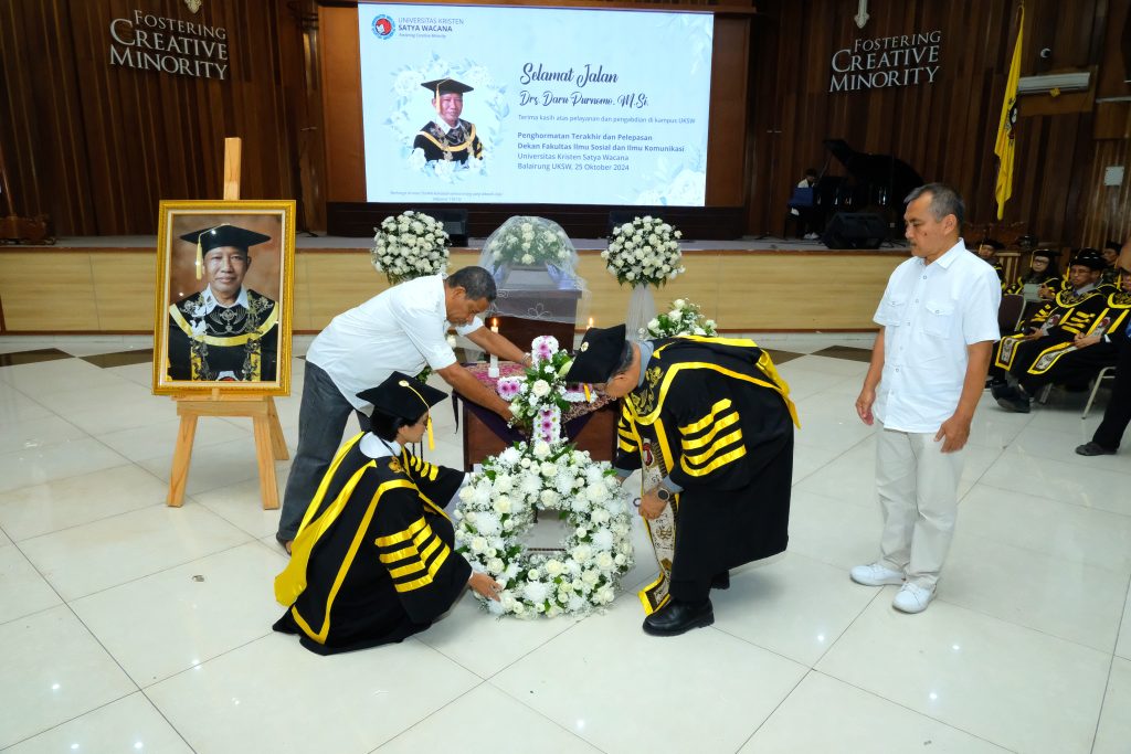 Upacara penghormatan tersebut dihadiri berbagai pihak, dari kalangan mahasiswa, dosen, hingga pengurus Yayasan Perguruan Tinggi Kristen Satya Wacana (YPTKSW). Sosok Drs. Daru Purnomo tidak hanya meninggalkan jejak dalam dunia akademik namun juga di hati banyak orang yang pernah berinteraksi dengannya. Kenangan akan semangat, integritas, dan ketulusan beliau akan selalu hidup, menjadi inspirasi untuk generasi berikutnya dalam memajukan UKSW dan menjaga semangat kebersamaan.