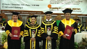 Tiga Guru Besar dikukuhkan oleh Rektor Universitas Kristen Satya Wacana (UKSW) Prof. Dr. Intiyas Utami, S.E., M.Si., Ak., Kamis (7/12/2023).