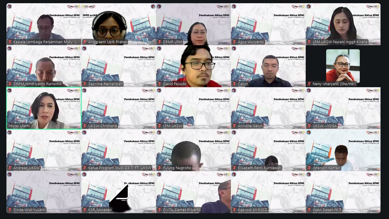 Universitas Kristen Satya Wacana (UKSW) kembali menegaskan komitmennya dalam menjaga dan meningkatkan mutu pendidikan melalui pembukaan siklus Sistem Penjaminan Mutu Internal (SPMI) yang dilaksanakan secara daring, Selasa (24/02/2026). Kegiatan rutin UKSW ini dibuka secara resmi oleh Rektor Profesor Intiyas Utami. Turut mengikuti pembukaan siklus SPMI adalah para Wakil Rektor UKSW, Kepala Lembaga Penjaminan Mutu (LPM) Dr. Adita Sutresno, S.Si., M.Sc., Pimpinan Fakultas dan Direktorat, serta gugus penjaminan mutu di aras fakultas dan direktorat serta divisi.